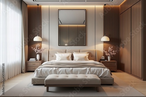 photo, idea, elegant, bedchamber, large, bed, mirror, cosy, luxurious, young, couple, man, woman, caucasian, 2, people, sleeping, relaxation, design, interior, furniture, home, decor, romance, comfort, happiness, love, content, peaceful, upscale, boutique, hotel, lifestyle, intimacy, affluent, neighbourhood, luxury, living, modern, clean