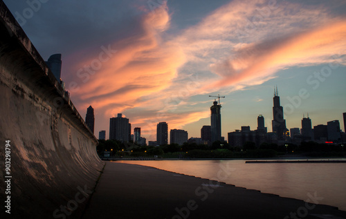 city, sunset, skyline, sky, city landscape, building, urban, cloud, night, architecture, skyscraper, building, silhouette, sunrise, downtown, dusk, water, sun, landscape, new, panorama, evening, york, timelapse, view, chicago, illinois