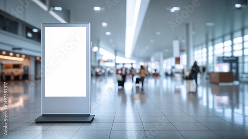 billboard, aerodrome, advertising, blank, display, signage, poster, mock-up, airport terminal, terminal, people, traveler, travel, transportation, indoor, interior, commercial, business, marketing, promotion, information, flight, departure, arrival, gate, passenger, public, space, modern, illuminated, light, advertising space, white, empty, screen, technology