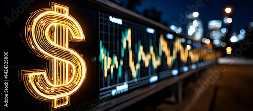dollar, signs, financial, market, datum, graph, chart, trend, investment, economy, currency, exchange, price, stock, indicator, trading, analysis, volatility, growth, decayed, night, city, light, illuminated, display, technology, business, number, projection, global, investment