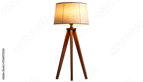lamp, floor, lighting, shade, tan, fabric, wooden, tripod, leg, isolated, black, background, light, illumination, interior, design, home, decor, racked, fixture, furniture, object, bright, cosy, warm, glow, illuminated, indoor, standing, simple, elegance, contemporary, style, room, darkness, presentation, studio, spotlight, decoration, element, vertical, closeup, staging, rendering, neutral
