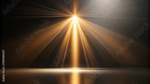Illuminated Stage with Golden Light Rays and Reflective Floor