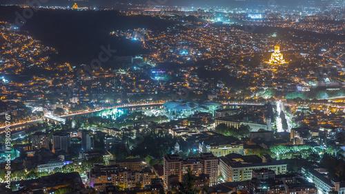 up high, aerial, architecture, building, capital, cathedral, caucasia, christianity, church, city, contemporary, culture, dome, dusk, europa, evening, georgia, georgian, historic, holy, illumination, justice, landmark, lapse, light, music, night, orthodox, panoramic, public, commonwealth, revenue, scene, sightseeing, skyscraper, square, tbilisi, time, time-lapse, timelapse, holiday maker, tower, travel, tree, trinity, twilight