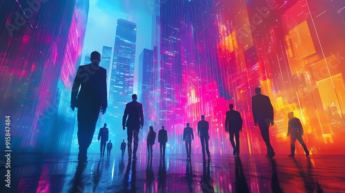 abstract, business, team, neon, city landscape, vibrant, light, building, street, urban, environment, glow, illustration, futuristic, modern, technology, concept, teamwork, collaboration, dynamic, innovation, glowing, architecture, jungle, speed, energy, corporate