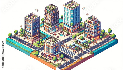 city, isometric, building, architecture, urban, house, computer, business, street, vector, chips, map, technology, electronic, skyline, city landscape, town, skyscraper, circuit, design, board, icon, illustration, road, home