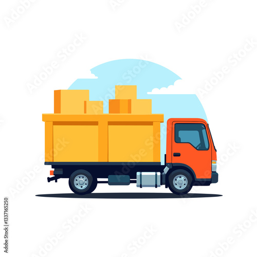truck, delivery, box, illustration, transportation, logistic, cargo, shipping, half face, loading, vehicle, orange, modern, graphic, good, organisation, efficiency, moving, commerce, inventory, service, freight, design, business, vivid colors, cardboard box, truck driver, concept, distribution, structure