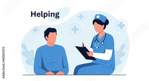 nurse, patient, health care, medicals, assistance, support, care, doctor, health, check-up, consultation, exam, diagnosis, treatment, practitioner, wellness, disease, recovery, clinical, clinic, hospital, uniform, stethoscope, clipboard, note, record, document, writing, male, female, together, professional, conversation, communication, empathy, compassion, understanding, medicine, disease, well-being, cartoon, isolated, vector, illustration