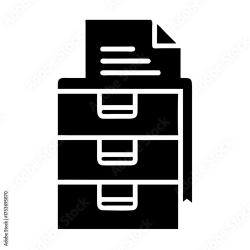 Illustration of a filing cabinet with documents in a simple black glyph style