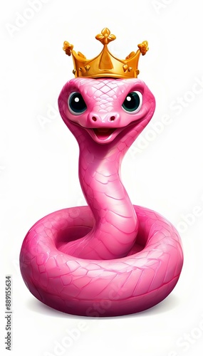 Illustration of a pink snake in a crown on a white background, a symbol of 2025