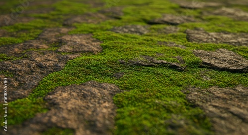 Illustration of a stone surface covered with green moss creates a natural texture