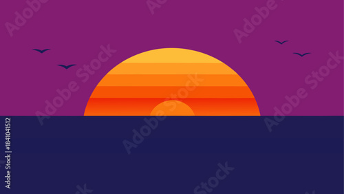transparent, sunset, ocean, bird, sky, purple, orange, horizon, water, silhouette, sea, flying, sun, evening, graphic, illustration, design, landscape, scene, nature, art, calm, peaceful, serene, tranquil, minimalist, abstract, seascape, coast, maritime, scenery, vista, view, background, wallpaper, template, element, symbol, icon, image, vector, artwork, aesthetic
