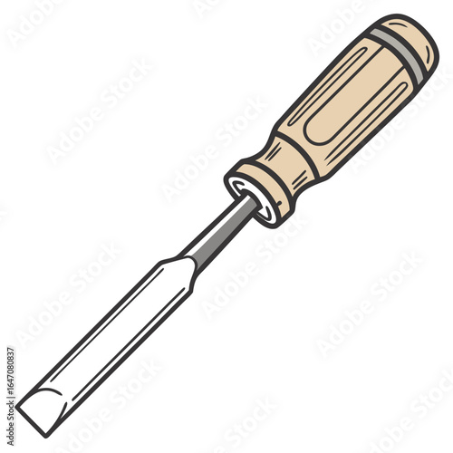 Illustration of a wooden handled chisel, a woodworking tool, isolated on white background