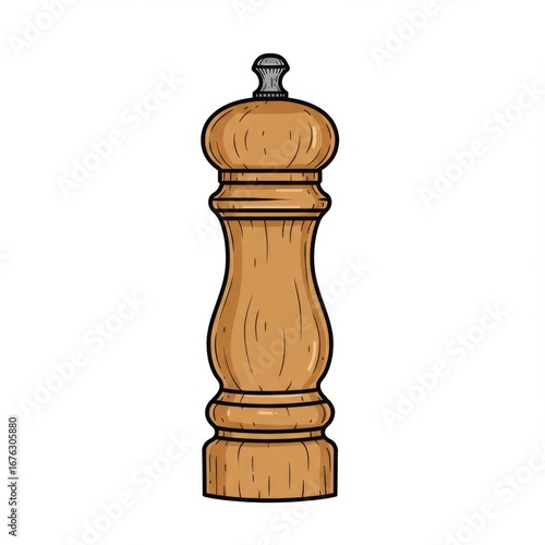 Illustration of a Wooden Pepper Mill with Silver Top on White Background