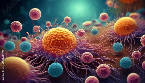 illustration, cancer, cell, various, form, vibrant, design, science, art, dynamic, modern, texture, biology