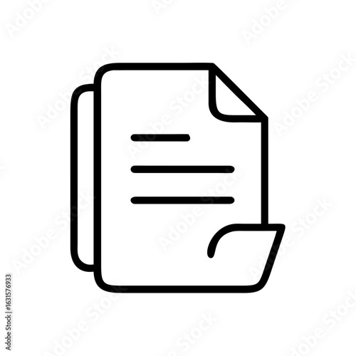 Illustration of document stack with curled corner and text lines in a minimalist black outline style