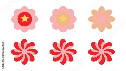 flower, floral, design, pink, red, star, yellow, bloom, blossom, illustration, decorative, graphic, clip art, isolated, element, vector, art, pattern, symbol, shape, ornament, cute, sweet, cartoon, flat, simple, artwork