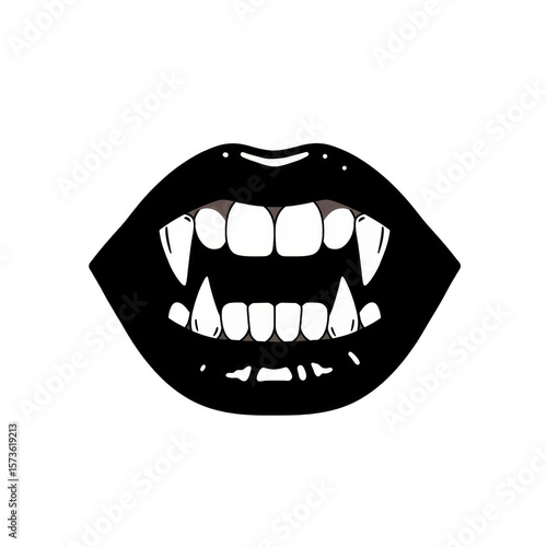 Illustration of Vampire Mouth with Sharp Fangs in Black and White