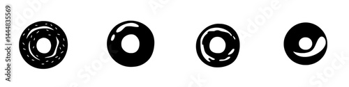 Illustrative silhouette pictograms depicting various donut shapes in minimalist style for design and food-related projects
