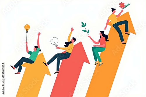 Illustrative Success Journey: Inspiring Teamwork and Growth with Bright Colors and Positive Emotions