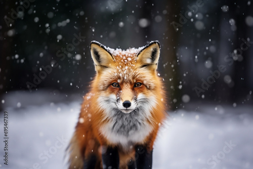 image, red fox, snow, camera, wildlife, nature, mammal, captivating, expressive, fierce, powerful, gazing, background, illustration