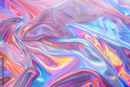 Image of Holographic iridescent effect silk material. Texture for background usage