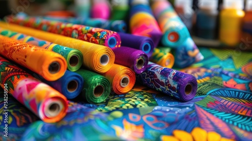 Images showcasing the vibrant colors and durable finish of fabric paint, designed for decorating and embellishing textiles such as clothing, accessories, upholstery, and quilts