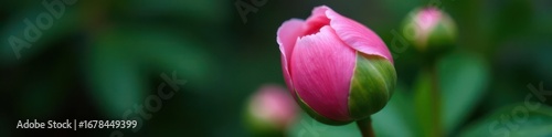 Immature peony bud, velvety texture, light green sepals, nature, isolated