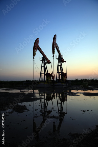 in the evening, oil pumps are running