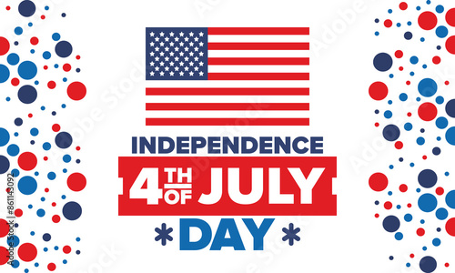 Independence Day in United States of America. The Fourth of July. Happy national holiday, celebrated annual in July 4. American flag. Country freedom day. Patriotic event design. Vector poster