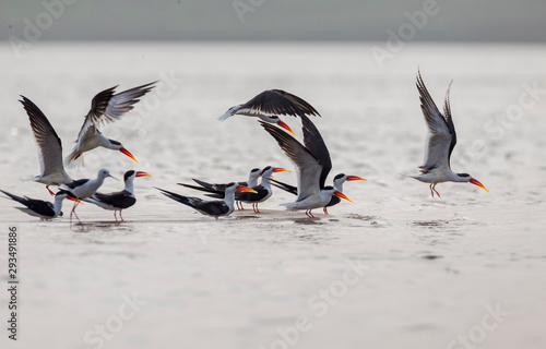 Indian Skimmers Landing in Chambal River,Rajasthan,India