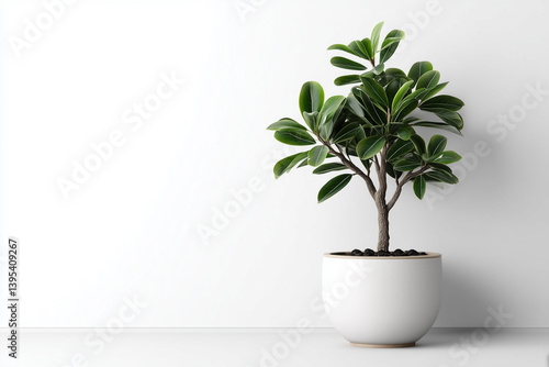 Indoor potted plant with glossy leaves placed near a bright, minimalist wall in a modern living space