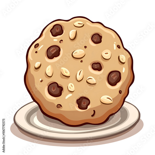 Indulging in the sweet harmony of nutty chocolate chip cookies brings joy to every bite, digital illustration of food art concept.