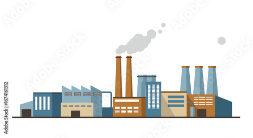flat, industrial, factory, chimney, smoke, manufacturing, building, architecture, industry, modern, plant, production, skyline, pollution, urban, engineering, machinery, construction, facility, energy, environment, infrastructure, economy, industrialization, power, technology, business, smokestack, blueprint, economic, power plant