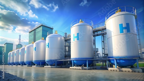 transportation, three-dimensional, supply, research, realistic, no people, futuristic, economy, development, chemistry, power, factory, renewable, innovation, engineering, climate, gas, revolution, reduction, pipe, pipeline, hydrogen, industry, container, clear sky, blue, sky, white color, plant, environmentally friendly, visualisation