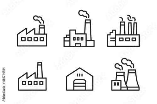 Industrial icons: factory, warehouse, and power plant in minimalist design