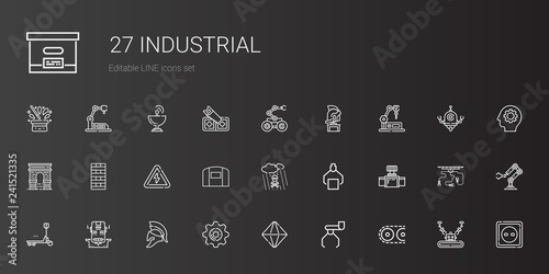 industrial, icon, set, vector, conveyer, robot, mineral, setting, helmet, duty, valva, acid, rain, hangar, high, voltage, chimney, arc, mains outlet, gear, saw, satellite, dish, hat, box, illustration, design, symbol, signs, isolated, industry, concept, line, equipment, graphic, technology, outline, white, machine, mechanical, manufacturing