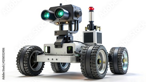 Industrial Inspection Robot, Wheeled Robot, Automated Inspection, Camera Robot, LED Lights, Utility Inspection Robot, Robotic Inspection, Autonomous Inspection System, White Background