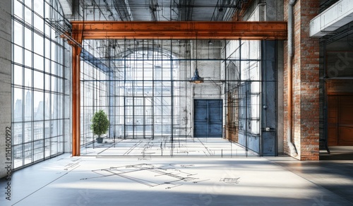 architecture, building, interior, space, loft, design, construction, industrial, window, room, urban, concrete, blueprint, plant, structure, open, empty, floor, light, large, modern, metal, framework, vignetting, concept, plan, drawing, draft, grid, perspective, illustration, visualisation, engineering, diagram, layout, outline, development, project, apartment, home, residential, property, warehouse, factory, studio, workshop, infrastructure