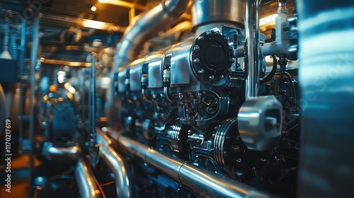 industrial, machinery, engine, component, factory, metal, technology, equipment, mechanic, production, manufacturing, pipe, engineering, workshop, diesel, power, generator, system, facility, closeup, assembly, maintenance, operation, infrastructure, design, tool, automation, part, system, energy, machine, performance, pipeline, work, structure, industry, hydraulic, process