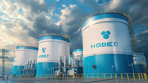 Industrial Storage Tanks with Blue and White Paint and a Logo