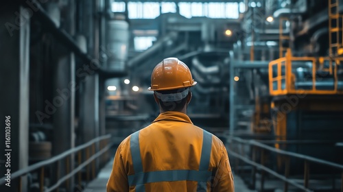 Industrial Worker in Yellow Safety Gear at Construction Site with Scaffolding and Machinery Background