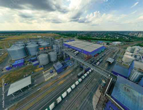 Industrial zone with factory or Plant processing of sunflower oil. Aerial view