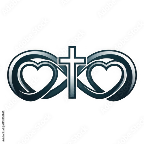 Infinity symbol with cross and hearts isolated on white isolated on transparent background