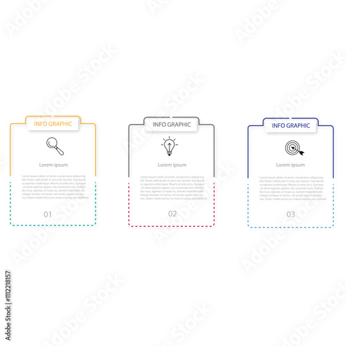infographic template 3 dots template frame style with 3 dots stage template or steps with slice table boxes with dotted lines for presentation vector