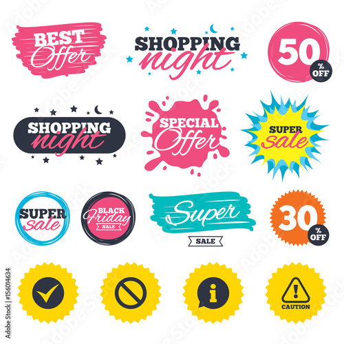 info, information, stop, prohibition, attention, warning, exclamation, caution, check, mark, confirm, yes, approved, inform, help, correct, tick, positive, checkbox, checkmark, apply, speech, bubble, hazard, danger, icon, signs, buttons, symbol, flat, label, token, shape, set, badge, app, vector, splash, sale, hot drink, banner, paint, sticker, web, discount, offer, brush