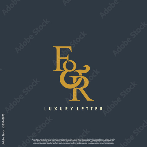Initial letter F & R FR luxury art vector mark logo, gold color on black background.