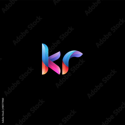 Initial lowercase letter kr, curve rounded logo, gradient vibrant colorful glossy colors on black background