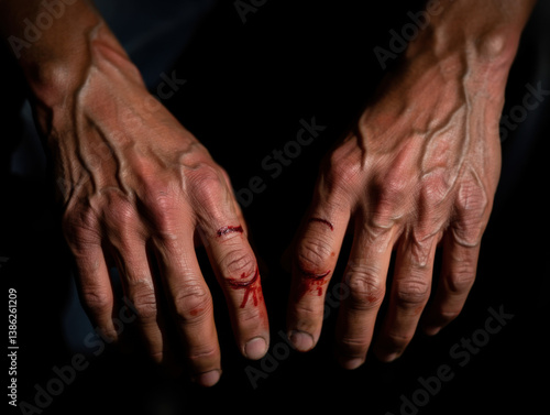 injured, finger, bleeding, closeup, cut, blood, droplet, minor, injury, small, superficial, palm, hand, 2, human, body part, pain, bruised, accident, first aid, medicals, health care, wound, injury, finger, red, skin, detail, macro, closeup, isolated, dark, background, trauma, care, treatment, two hands, human hand