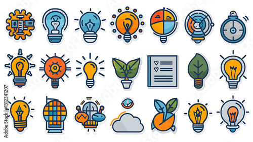 Innovation & Technology Icon Set – Lightbulbs, Rockets, and Global Growth