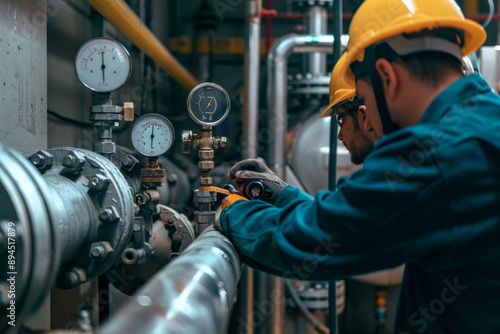 Inspection engineer teamwork checking pressure gauges or they check pipes in plant close up